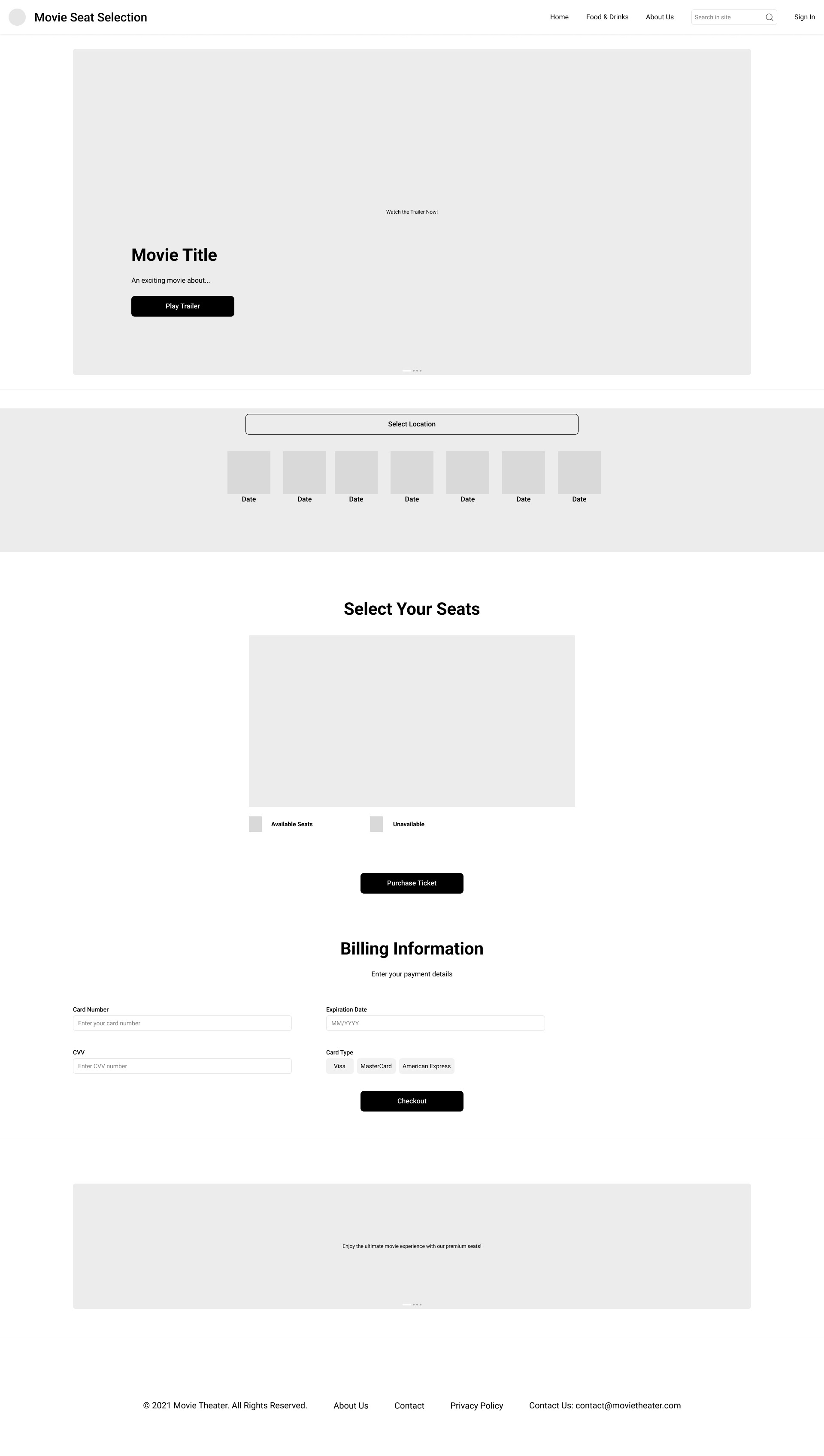 The final design brings Lumière’s vision to life—merging elegance with usability. From refined visuals to streamlined navigation, every element was crafted to meet user goals and reflect the theater’s upscale identity. The site was then developed using HTML and CSS, ensuring both form and function work seamlessly together.