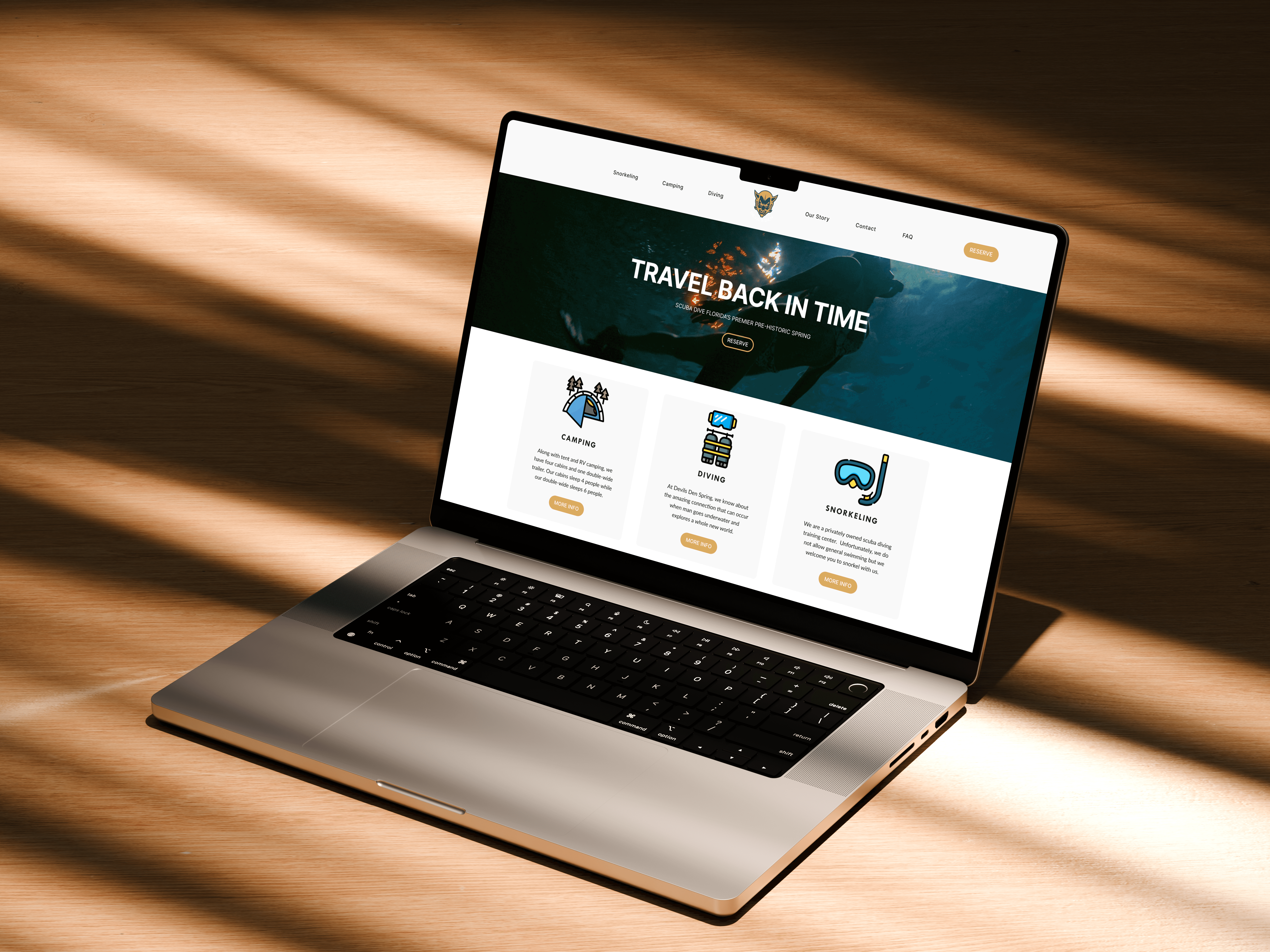 Refreshing the brand identity for a campground in Williston, Florida, known for its prehistoric underwater spring and unique diving experience.